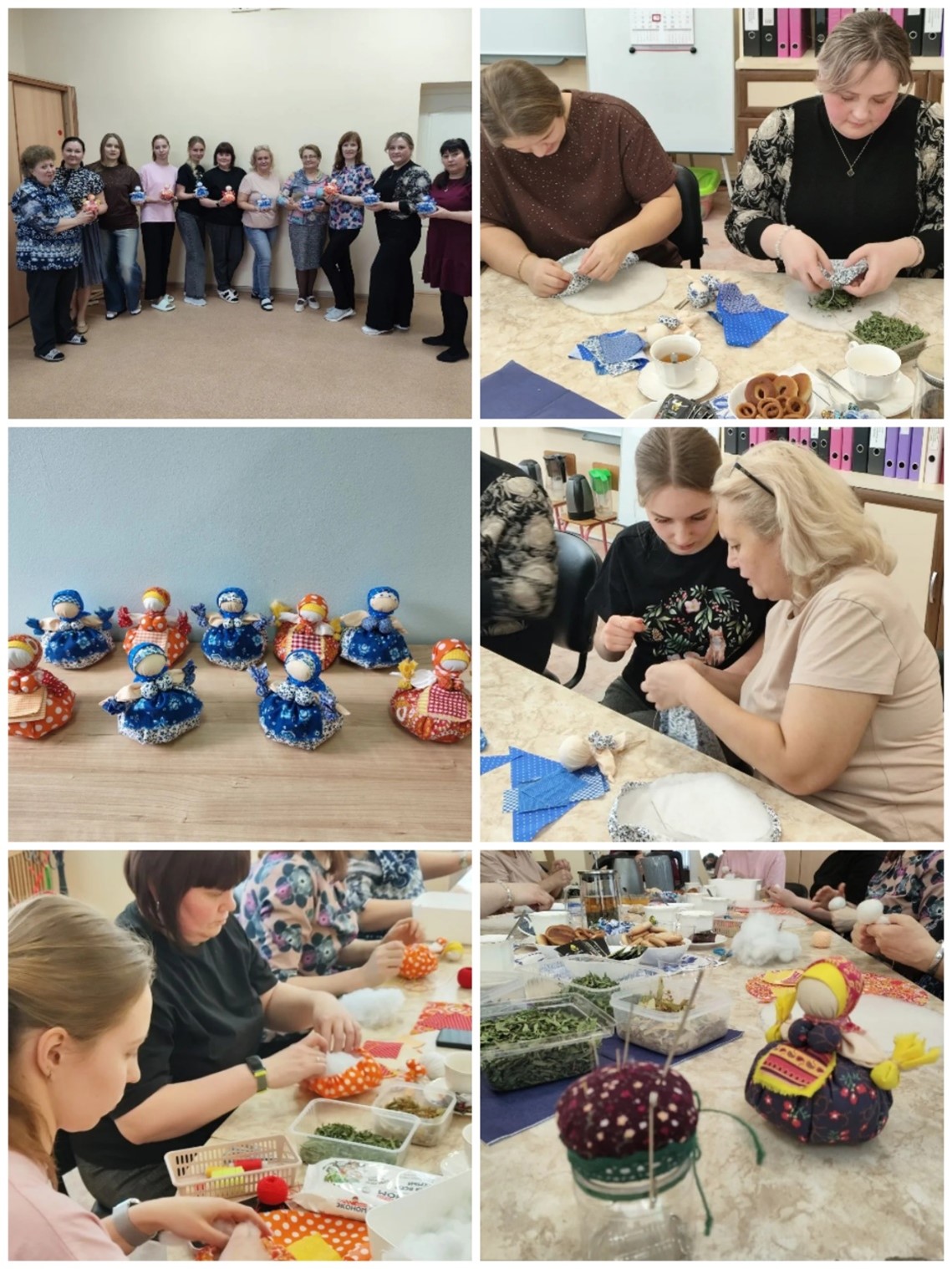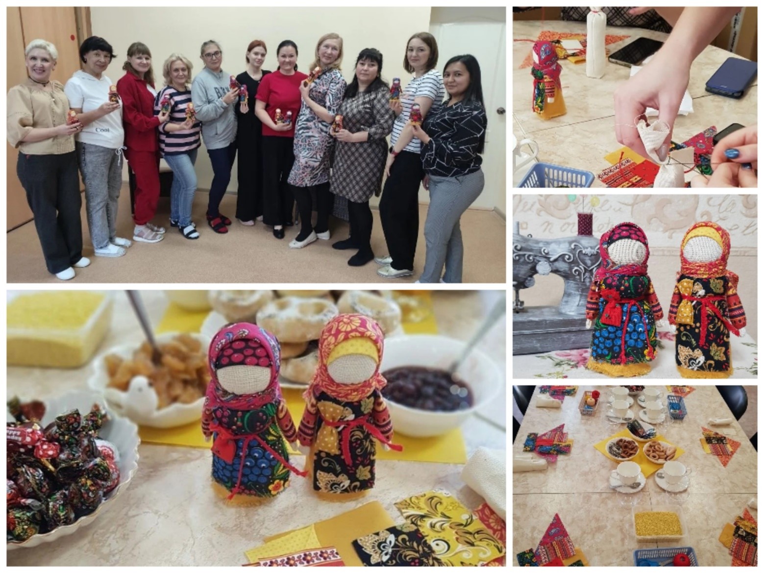 В рамках просвещения педагогов по вопросу духовно-нравственного и патриотического воспитания и накануне внутреннего смотра-конкурса «На лучшее оформление группового пространства по патриотическому и духовно-нравственному воспитанию дошкольников» в нашем дошкольном учреждении 15 января 2026 года был организован второй мастер-класс для педагогов «Кукла-Крепеничка (Зерновушка)». Организатором данного мероприятия стал педагог по изодеятельности, Светлана Борисовна. Главной целью данного мастер-класса является знакомство педагогов с русской традицией изготовления славянских кукол-оберегов, а также улучшение внешнего облика группы по духовно-нравственному воспитанию через использование народных промыслов. Педагоги младших и средних групп изготавливали кукол-Крупеничек в стиле Городецкой народной игрушки, а педагоги старших и подготовительных к школе групп мастерили кукол-Зерновушек в стиле Хохломской народной куклы. Все куклы были набиты пшеном для сохранения достатка и благополучия в доме.