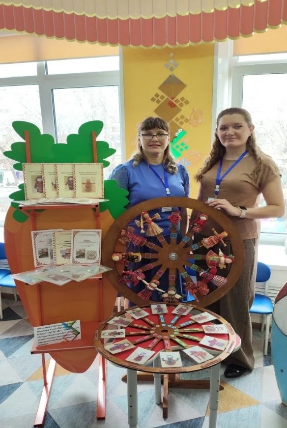 Ярмарка педагогических идей — это своего рода праздник творчества и вдохновения среди воспитателей дошкольных образовательных учреждений. Здесь каждый педагог может показать свою уникальность, представив оригинальные разработки, игровые пособия и методики. Педагоги нашего дошкольного учреждения презентовали всему педагогическому сообществу методическое пособие по нравственно-патриотическому воспитанию «Колесо времени в русских традициях: народные куклы для каждого сезона».