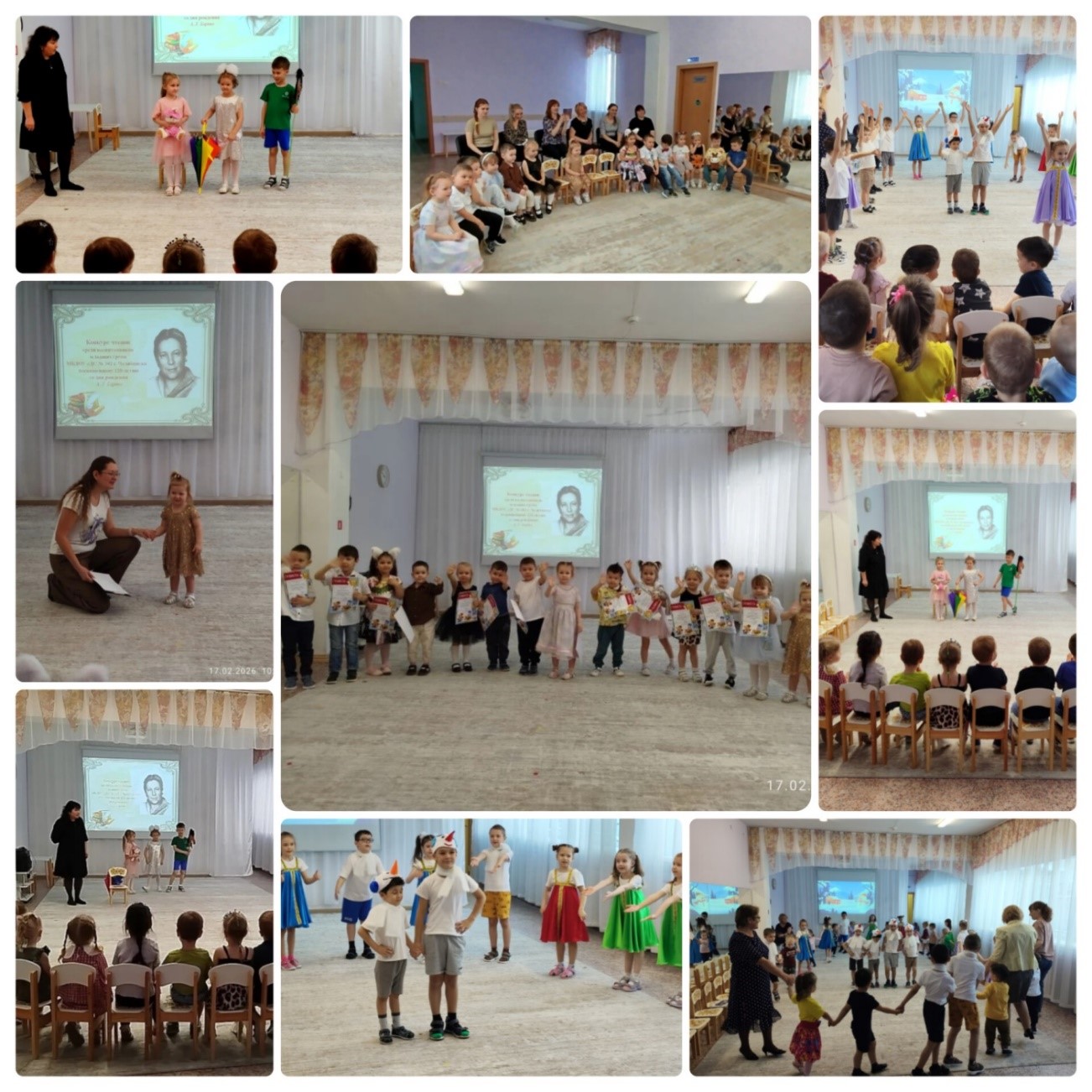 В нашем детском саду ребята старших групп проявили свои театральные способности и вместе со своими воспитателями подготовили сценки по своим любимым стихотворениям Агнии Львовны. Маленькие театральные представления были показаны малышам, которые остались в полном восторге от знакомых добрых стихов и артистизма своих старших друзей. А после, уже среди ребят из младших групп, был проведен конкурс чтецов. Несмотря на свой совсем небольшой возраст, ребята очень талантливо и умело смогли передать эмоциональные интонации и характер произведений А.Л. Барто. Все маленькие участники конкурса были награждены Грамотами и получили порцию бурных аплодисментов от своих наставников и восторженных зрителей.